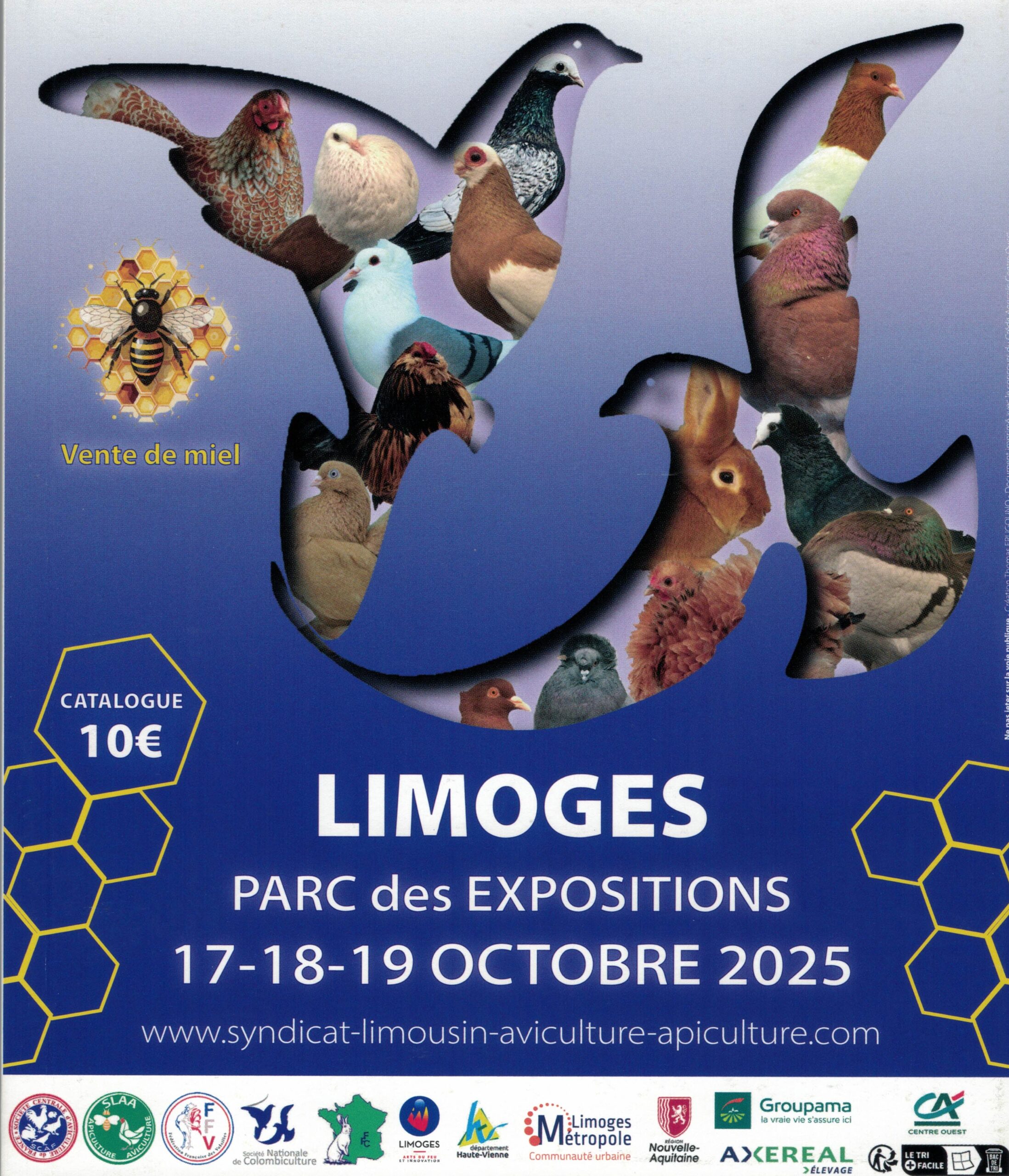 42ème Concours national Limoges 17-19 octobre 2025 Le catalogue du 42ème Concours national avec les notes décernées est disponible en cliquant sur l’image ci-contre. Vous trouverez ci-dessous les formulaires pour participer au Concours national de Limoges. Les inscriptions en ligne seront ouvertes prochainement. https://expositions-aviculture.fr Feuilles d'inscription Règlement Informations pratiques