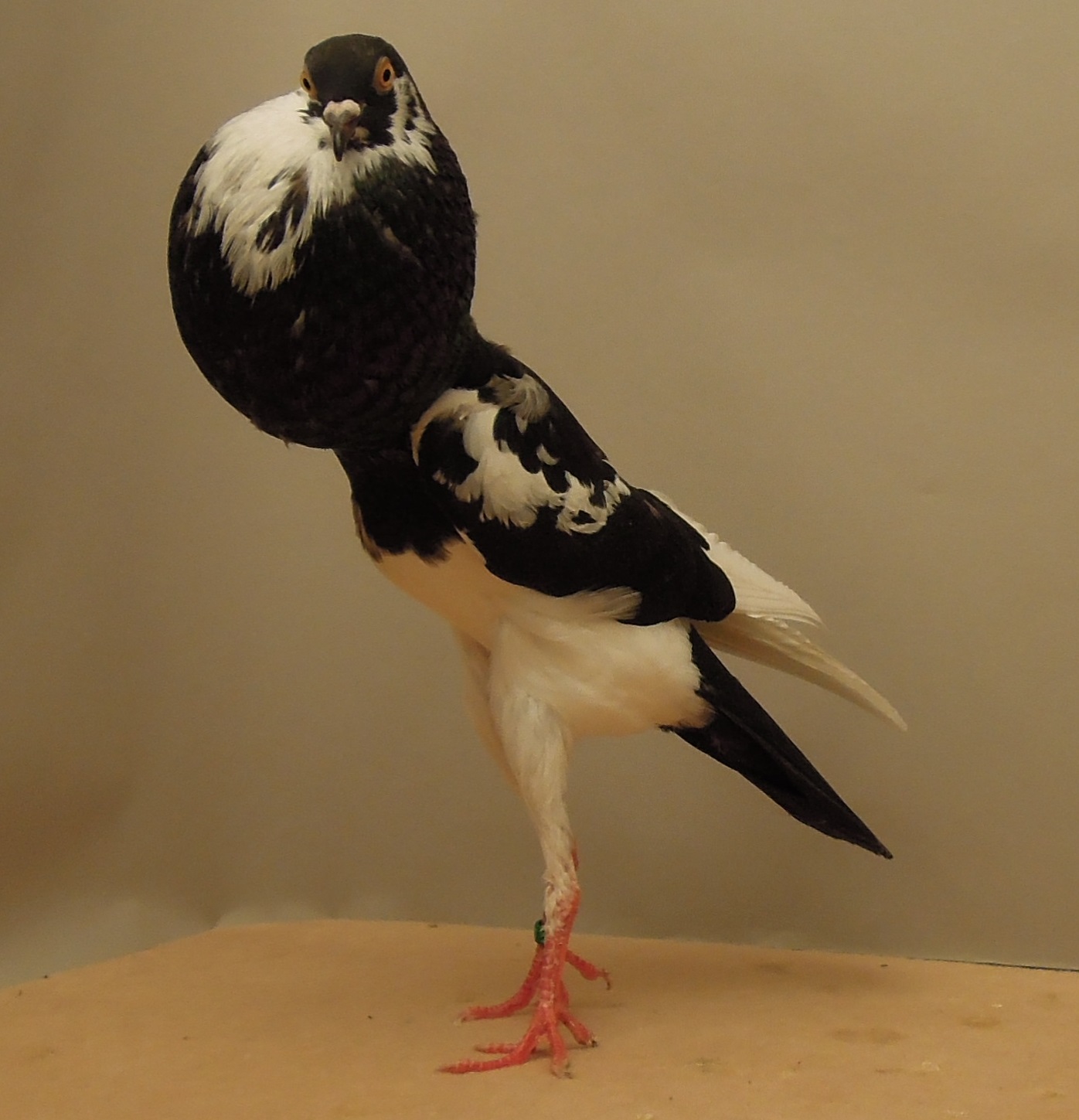 Rencontre européenne, Osthofen 2014. Femelle Boulant Brunner noir à bavette, Best in show à Erwin Sedlmeier.