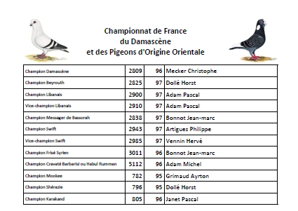 C’est à MOULINS lors de la Nationale SNC que le championnat de France des pigeons d’Origine Orientale a été organisé cette année 2019.
