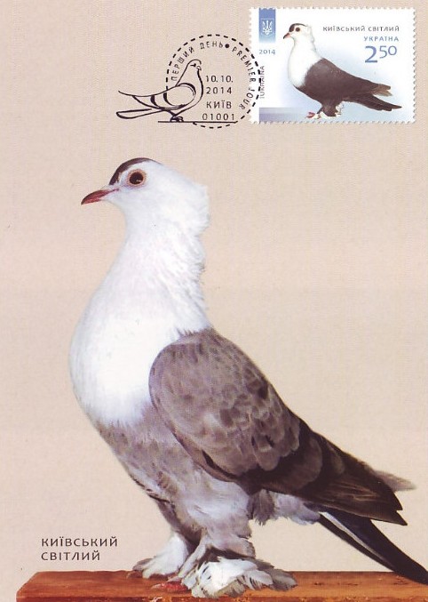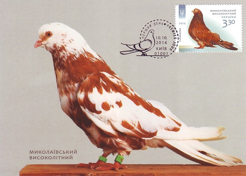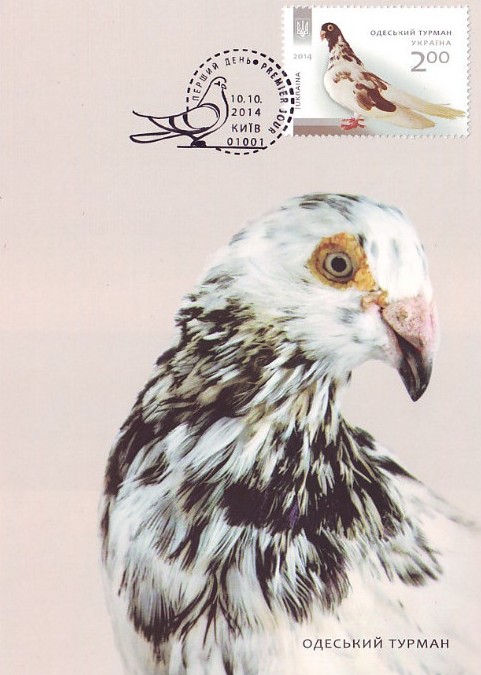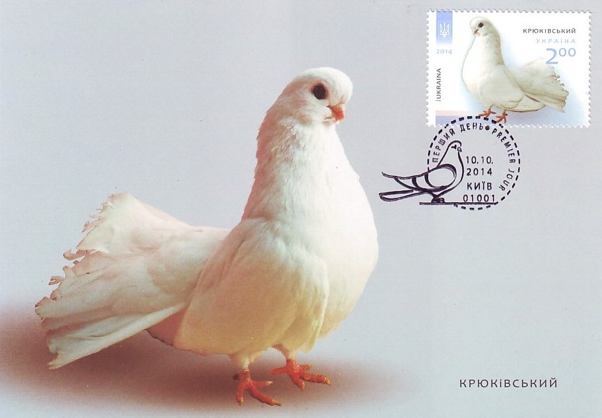 La Poste d’Ukraine a émis en 2014 une série de 4 timbres consacrée aux races nationales de pigeons.
