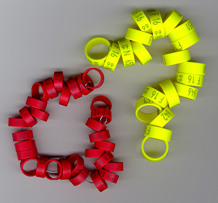 Elles changent de couleur chaque année et porte un numéro unique. Elles ne peuvent être utilisées que pour les pigeons de race et Tourterelles rieuses mais en aucun cas pour des volailles.
