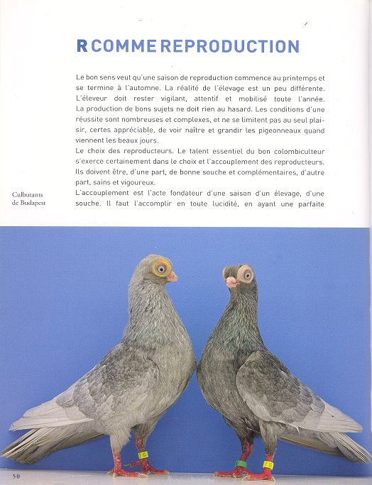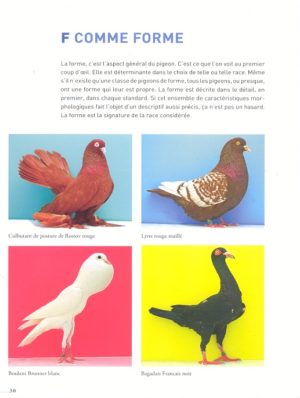 Illustré par plus de 500 photos, il permet également de découvrir une partie des 400 races de pigeons (Tourterelle rieuse incluse) détenues et sélectionnées dans le monde avec toutes leurs caractéristiques morphologiques.